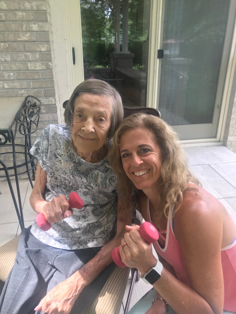 Yup. Niney-freaking-one, people. Most days she is very tired and often feels weak and just run down. She’s got some arthritis pain in her shoulder, and has had some injections in her back for pain do to multiple fractures over the past few years. Other than that she’s in perfect health. But SHE’S OLD!! And therefore, things are tough for her. Getting up and down from chairs takes a lot of effort. Walking takes so much of her energy. And due to some of her struggles with pain on certain days, just moving around is a challenge. But not ONCE have I EVER heard Donna utter a single complaint to me during our sessions. She NEVER says “I can’t do that” or “I don’t want to do that” or “please don’t make me do that!” Trust me, I know she pretty much hates it all, but thanks to the encouragement of her super amazing children, she sticks with it. Some days I don’t even get her out of her chair. Other days, we walk all the way to the end of the driveway and back. But every time I come, WE MOVE.